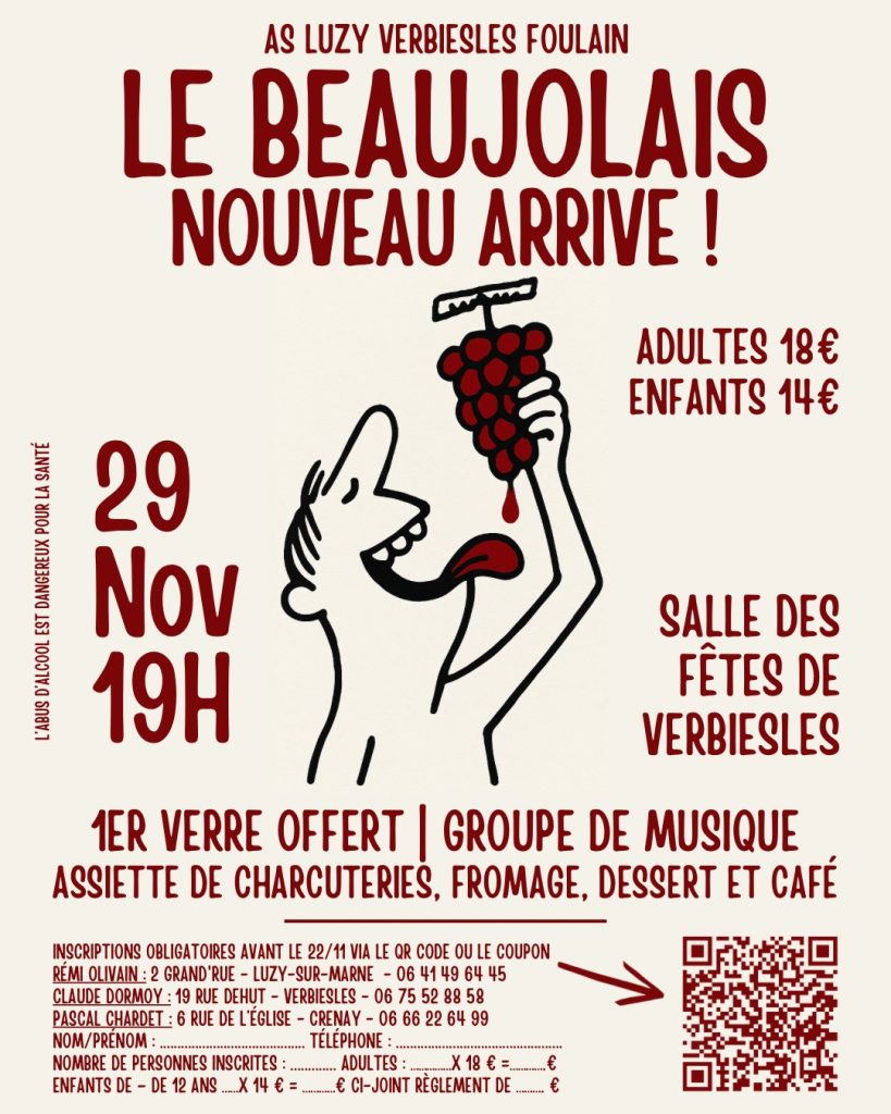 LE BEAUJOLAIS NOUVEAU ARRIVE Venez déguster le Beaujolais Nouveau 2025 ! Rendez-vous le samedi…